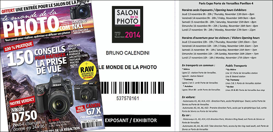 Si vous désirez parler vidéo, photo, drone, techniques, matériel, workflow, tendances,… ou simplement nous rencontrer, n’hésitez pas à demander Bruno sur le stand E5, il fera partie de l’équipe du magazine LE MONDE DE LA PHOTO.